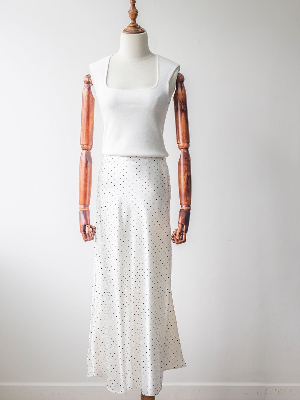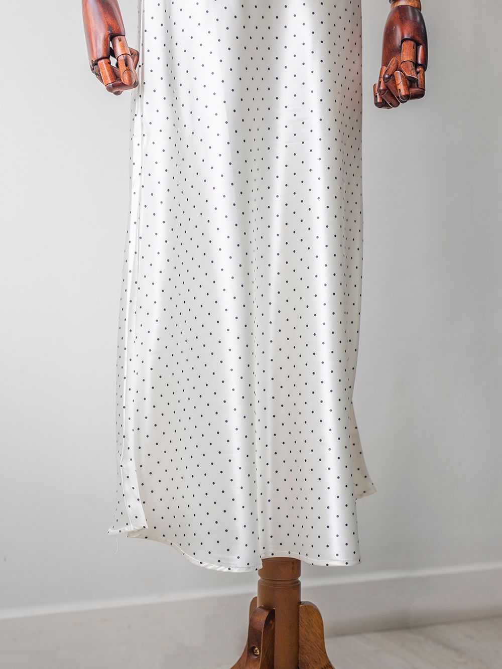 CHÂN VÁY LỤA DÀI DÁNG SUÔNG CHẤM BI